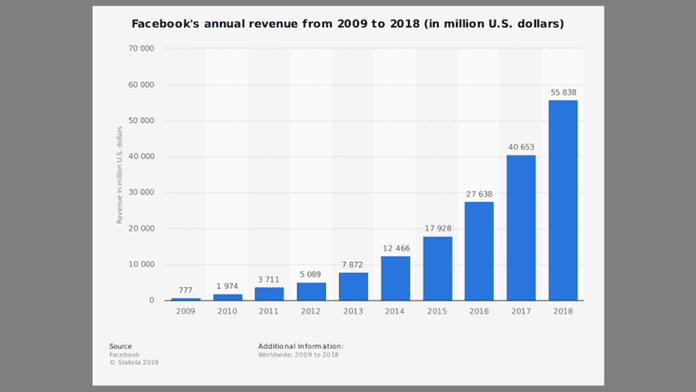 ส่วนรายงานจาก Statista พบว่ารายได้จากการให้บริการโฆษณาของ เฟสบุ๊ค ช่วง 10 ปีที่ผ่านมา เพิ่มขึ้นมาแล้ว 7100%